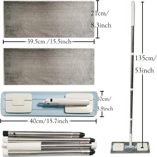 • Professional Microfiber Mop, Pad Size: 39.5cm(15.5’’) x 21cm(8.2’’).